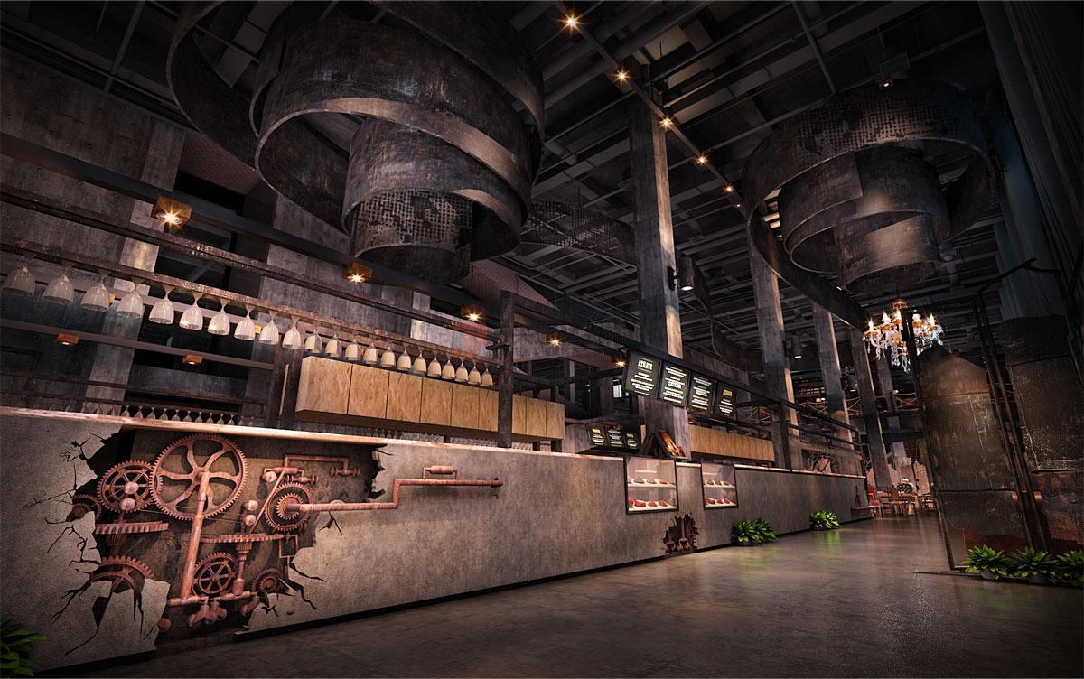 • 北京萬興通達辦公裝修項目-個性化美食城裝修效果圖